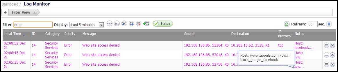 Log Monitor 'de ise aşağıdaki gibi bir rapor göreceksiniz.